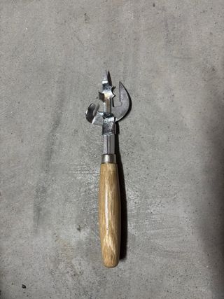 Abridor de latas e garrafas com um design clássico. - Cabo em madeira. - Detalhes em metal.