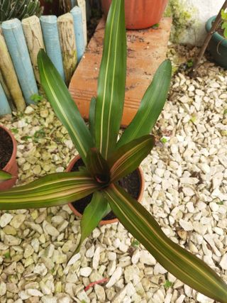 Planta de interior tipo bromélia com folhas verdes e listras. Segunda foto é da planta mae para ver como fica - Folhagem variegada. - Ideal para decoração.