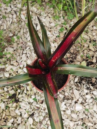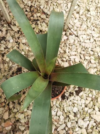 Planta de interior tipo bromelia. - Hojas verdes con tonos rojizos. - Ideal para coleccionistas de plantas.