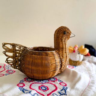 Conjunto encantador de 3 cestas antiguas hechas a mano en forma de pato, originarias de Portugal. Elaboradas en mimbre oscuro trenzado a mano, cada una tiene una forma diferente y un carácter único. Perfectas para: 🌿 Decoración boho, rústica o cottagecore 🍋 Usar como fruteros, para llaves, servilletas o simplemente decorar 🧺 Añadir un toque cálido y artesanal a cualquier espacio 📏 Medidas: ver fotos con regla 🖐️ Hechas a mano 🇵🇹 Procedencia: Portugal - Feitos de vime castanho.