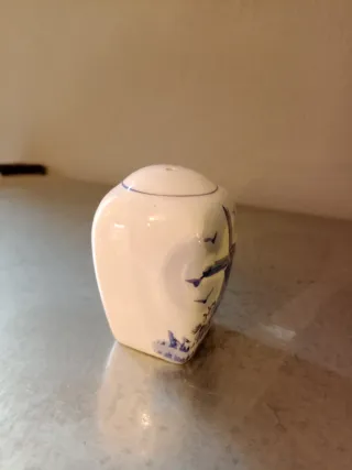saleiro ou pimenteiro em cerâmica com um charmoso design de moinho. - Pintura artesanal com detalhes em azul. - Acabamento brilhante.
