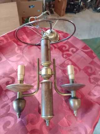 Candeeiro de teto com um design clássico e elegante. Precisa de limpeza adequada ideal para quem restaure. - Combinação de madeira e metal. - Detalhes em dourado. - Estilo vintage.