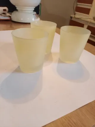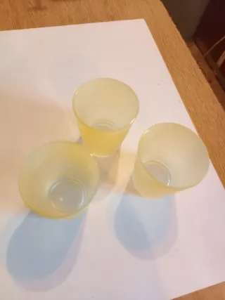 Conjunto de três copos com acabamento fosco e tonalidade amarela. - Material: Vidro - Cor: Amarelo translúcido