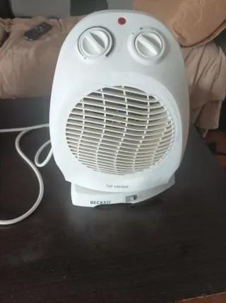 Aquecedor elétrico portátil da marca BECKEN. - Controlo de temperatura. - Várias potências de aquecimento. - Design compacto e fácil de transportar.