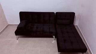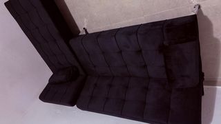 Sofá cama com design moderno e confortável, ideal para otimizar espaços. - Comprimento: 1,98 m - Revestimento em veludo - Cor preta