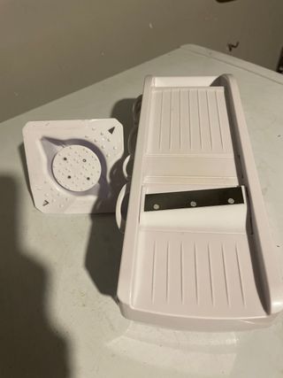 Ralador, cortador de legumes, bandolim da marca Zyliss Na caixa com livro de receitas, 6 pratos diferentes, ventosa, empurrador