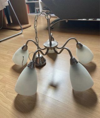 Candeeiro de teto elegante e moderno. Ideal para adicionar um toque sofisticado a qualquer divisão. - Design minimalista e clean. - Combinação de vidro translúcido e metal prateado. - Peça única, em bom estado.