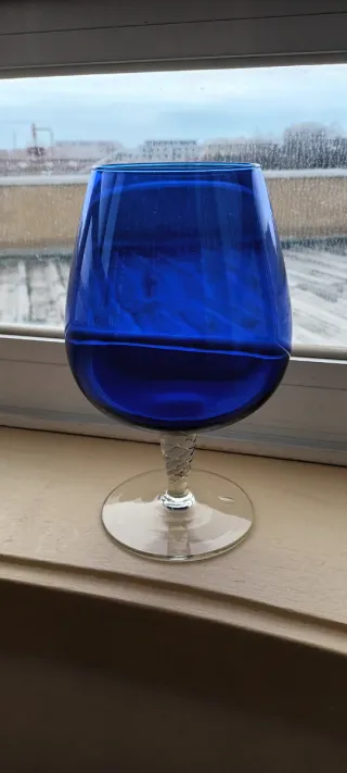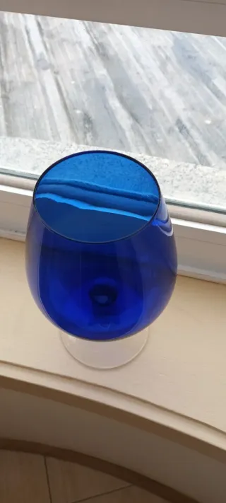 Este grande balão de vidro azul cobalto tem um design vintage elegante. A sua base transparente e o caule torcido adicionam um toque de sofisticação. - Design vintage - Vidro azul cobalto - Base transparente - Caule torcido Tem 22cm. de altura. OBS.- Para o balão rubi veja o meu outro anúncio.