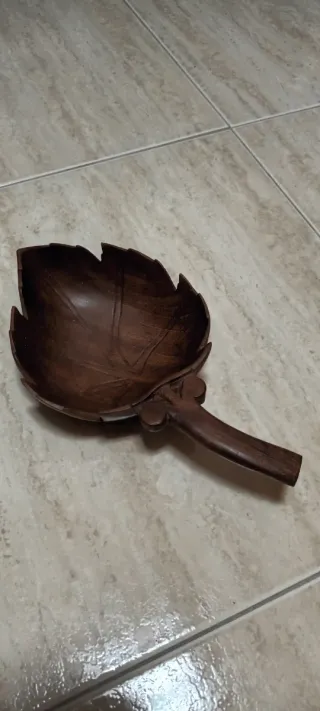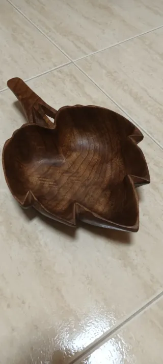 Linda taça/recipiente em madeira de qualidade, feito manualmente, em forma de folha. Mede 31cm. de comprimento por 18,5cm. de largura. Prático, mas super bonito e decorativo.