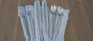 Conjunto de talheres Herdmar Stick com 48 peças. Produzido em aço inox 18/10. Qualidade superior e reconhecida Herdmar. Design sofisticado, moderno e elegante. Acabamento polido brilhante. Ideal para uso diário ou ocasiões especiais. Envio rápido e cuidado. Disponho de mais quantidades. Faqueiro composto por: 12 facas mesa 12 garfos mesa 12 colheres mesa 12 colheres chá