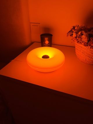 Lâmpada em formato de donut, um item decorativo moderno e divertido. - Design em formato de donut. - Iluminação suave e aconchegante. - Runs on battery (cable to charge included)