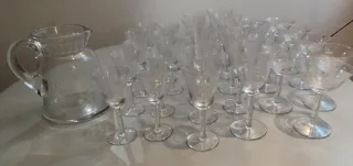 Hasta el 5/01/2026 no podré hacer envíos si está interesado en el artículo escríbame y lo puedo reservar Conjunto incompleto de jarras y copas para agua, vinos y licores vintage. Con diseño elegante y atemporal. No leer cristaletia, vintage, copas licor, vasos y jarras
