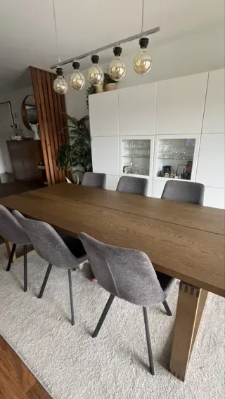 Conjunto de quatro cadeiras de jantar giratórias com um design moderno e elegante. São confortáveis e perfeitas para qualquer sala de jantar. - Assento e encosto acolchoados. - Base giratória de 360 graus. - Pés em metal preto.