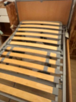 Cama elétrica com estrutura em metal e estrado em madeira. - Estrutura metálica. - Estrado em madeira.