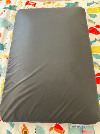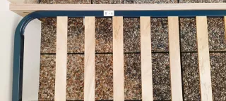 Cama de solteiro com estrutura em madeira e cabeceira em tecido. Cama de solteiro como nova com pouco uso e de montagem simples e fácil. Medidas para colchão 190x90. Vendido com estrado. A cabeceira é em tecido resistente, lavável e amovível. Possibilidade de mudar de cor, basta mandar fazer uma capa nova. Disponível para recolha em Guimarães. - Design moderno e elegante. - Estrutura robusta em madeira. - Cabeceira em tecido com acabamento em roxo.