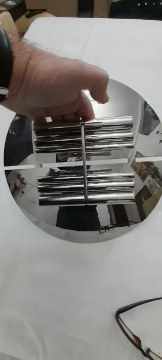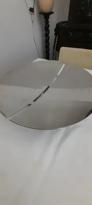Fruteira de design moderno e sofisticado, feita em metal de alta qualidade. - Acabamento polido e brilhante. - Formato redondo com divisões. - Peça central para sua mesa.