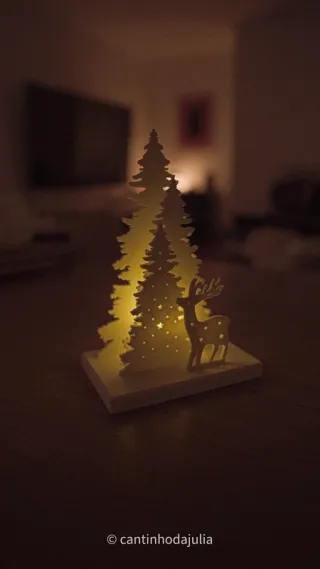Adicione um toque mágico à sua casa com esta encantadora decoração de Natal. - Design de árvore com veado. - Detalhes recortados com estrelas. - Iluminação interior quente.