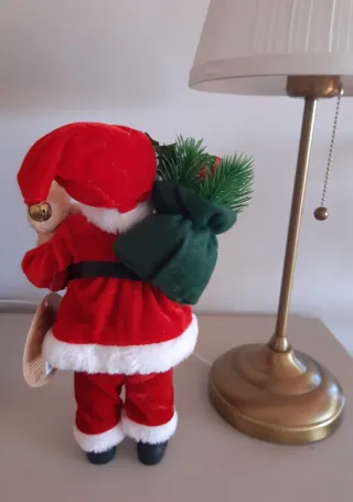 Figura decorativa do Pai Natal, perfeita para a época festiva. Inclui um ursinho e um saco de presentes. - Detalhes em tecido e plástico. - Cores vibrantes de vermelho e branco. -32 cm de altura -novo