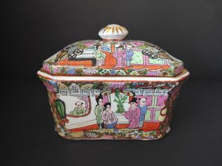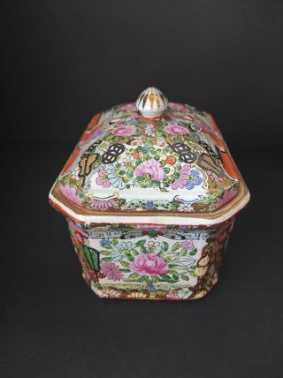 Peça em Ótimo Estado/Qualidade de Porcelana China com Carimbo na base. Caixa com desenho de figuras orientais na face da frente e desenho de rosa mandarim nas laterais. Peça com muitos detalhes com relevo e apontamentos em dourado. Caixa com 13 x 18 x 13 cm (largura x comprimento x altura). Valor negociável. Envios rápidos e 100% seguros. Experiência em + de 300 vendas enviadas. Faço Lotes; na compra de 3 ou mais peças faço desconto. Fotografias com medidas. Mande mensagem para esclarecer dúvidas.