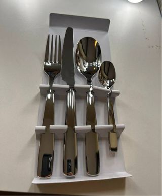 6 conjuntos de talheres da marca Smeg. Cada conjunto é composto por 4 peças. - Design moderno e elegante. - Acabamento em metal de alta qualidade. 110€ valor de 6 unidades 25€ cada um
