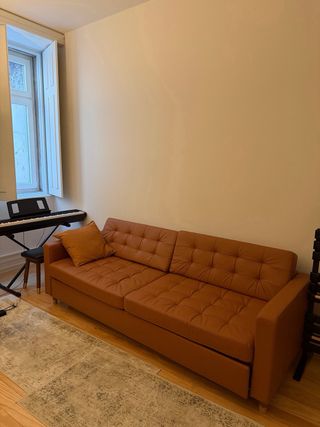 Sofá-cama de 3 lugares em pele, modelo LANDSKRONA. Sofá-cama em pele da IKEA. Como novo, usado durante um ano no nosso escritório em casa, acomodado para os hóspedes três vezes. O preço original é de 1.199€ e pode ser levantado em Lisboa por um óptimo preço!