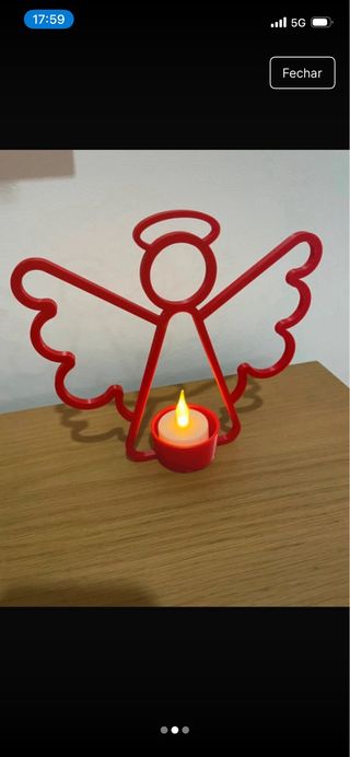 Luminária Anjo Vermelha ( inclui vela led com pilhas) Nunca usado.Possibilidade de fazer em prateado, verde, vermelho ou branco. Não dá para velas de cera. Impressão 3D. Medidas aproximadas: (L) 17cm* (A) 17 cm O valor não está negociável.