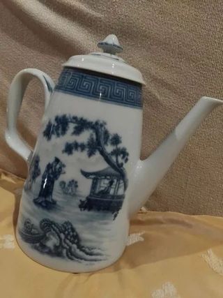 Cafeteira Vista Alegre em porcelana com um belo design. Decoração Kasumi. Novo. Nunca usada. - Pintura com motivos orientais. - Detalhes em azul e branco. - Peça decorativa e funcional.