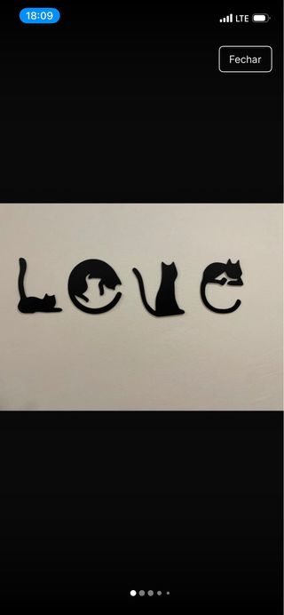 Letras LOVE - Silhueta de Gatos Nunca usado. Sem necessidade de pregos. Pode usar fita cola dupla. Impressão 3D. Medidas aproximadas de cada letra (L)11 cm * (A) 11 cm *0,2 cm Para outras medidas, mande mensagem. O valor não está negociavel.