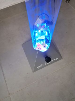 Este candeeiro decorativo e sensorial tem um design único e cativante, com luzes coloridas que criam um ambiente relaxante e acolhedor. Perfeito para adicionar um toque de magia e encanto a qualquer espaço. O candeeiro tem 12 luzes LED que mudam de cor, formando um total de 7 cores diferentes. As cores são exibidas num ciclo suave, intensificando o efeito relaxante do candeeiro. Ao ser ligado, começam a fluir bolhas da parte inferior do candeeiro, movimentando-se em torno dos peixes no seu interior, fazendo-os subir e descer suavemente. Tem um manipulo para ajustar a rapidez com que as bolhas se formam. Altura: 90cm