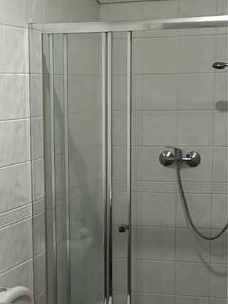 Porta de chuveiro deslizante com 100x190 cm da marca Sensea. Tripartida. Perfis cromados. Em bom estado. Recolha e transporte a cargo do comprador.
