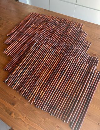 Conjunto de cinco individuais feitos à mão. - Confeccionados em bambu. - Design artesanal.