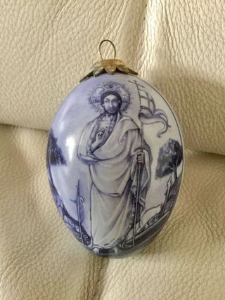 Vendo ovo de apresentação da Páscoa em porcelana. Peça belíssima em excelente estado de conservação. Belissíma pintura e com apontamentos a ouro. Dimensões: 10 x 7cm.