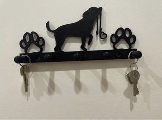 Chaveiro / Cabide de Trela - Dachshund ( cão salsicha). 4 suportes. Para pendurar chaves, trelas e outros pequenos objectos. O valor não está negociável.