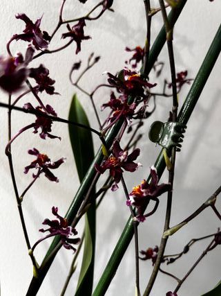 orquídea Oncidium Sharry Baby com flores. - Flores de cor vinho e cheiro a chocolate.