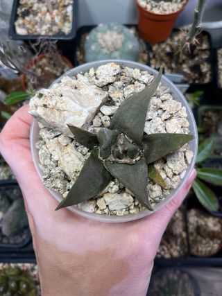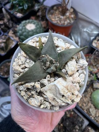 Vendo Ariocarpus hintonii en sus propias raíces (no injertado). Planta compacta, con tubérculos bien formados y textura característica. Especie muy apreciada por coleccionistas por su rareza y crecimiento lento. Ejemplar sano y bien establecido. Tamaño de maceta: aprox. 6 cm. Se envía la planta a raíz desnuda, sin maceta ni sustrato, correctamente protegida para el transporte.