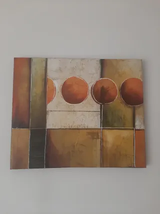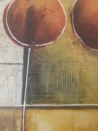 Tela decorativa com um design abstrato e textura em relevo. - Cores predominantes: tons de castanho e laranja. - Material: tecido. - Dimensão 60x50