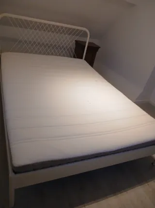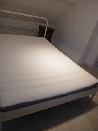 Cama de casal com estrutura em metal e colchão. - Estrutura da cama em metal. - Colchão com revestimento em tecido.