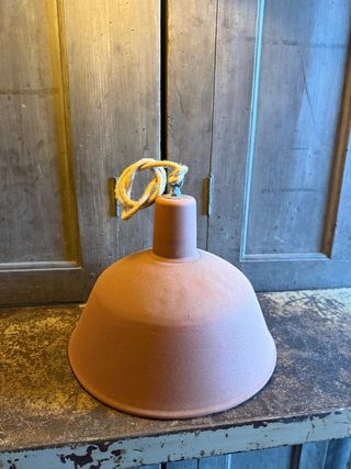 Candeeiro de teto com um design industrial vintage. - Acabamento em terracota. - Detalhe de corda para suspensão. Veja os meus outros anúncios.