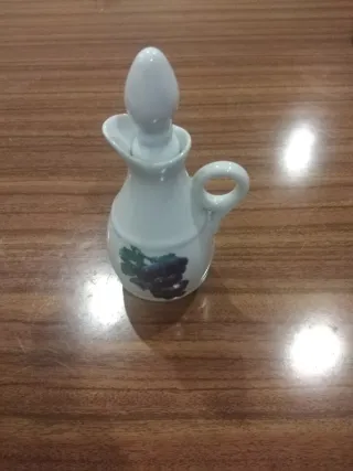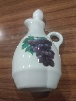 Um charmoso galheteiro em porcelana com um delicado desenho de uvas. - Design elegante com alça. - Tampa em formato de gota.
