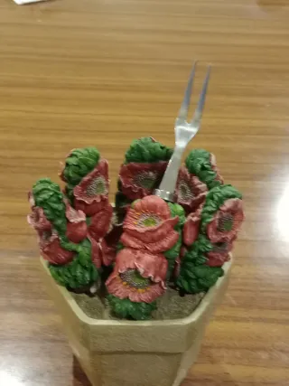 Conjunto 6 Garfos Sobremesa Flor Vermelha