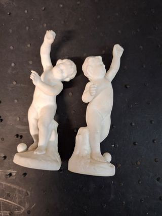 Porcelana velha italiana muito agradável, carimbada N Couronné - Ginori. 2 pequenas figuras feitas de fina porcelana branca, fosca, sem esmalte ou pintura. Como novas