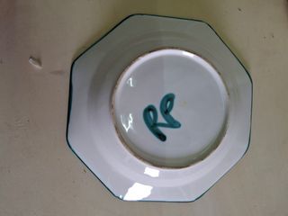 Prato octogonal em excelente estado O prato mede 25,7 por 25,7. Provavelmente da oficina de Robert Picault.