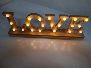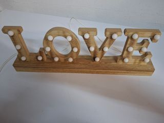 Iluminação decorativa LOVE feito em madeira como novo