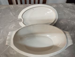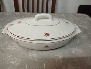 Travessa de porcelana com um delicado padrão floral. - Design clássico com borda em tom vinho. - Alças laterais para facilitar o transporte. ‼️ Atenção ver bem as fotos ‼️