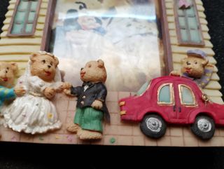 Porta-retrato com design rústico e charmoso, perfeito para exibir suas memórias. - Moldura em madeira com acabamento desgastado. - Espaço para três fotografias. - Detalhes decorativos com animais. - Novo, em embalagem fechada.