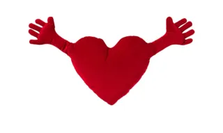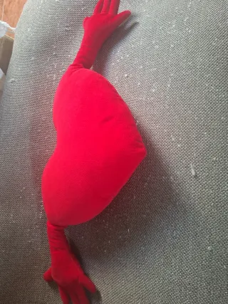 Almofada em formato de coração, com braços. - Cor vibrante. - Toque macio.