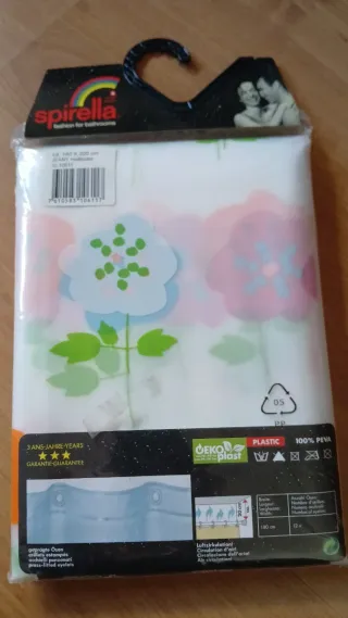 Cortina de duche da marca Spirella, modelo JEANY - Nova. Embalagem fechada. - Padrão floral multicolorido 📏Dimensões: 180 cm x 200 cm. - Material plástico. - Impermeável (waterproof). - Certificação OEKOPLAST.