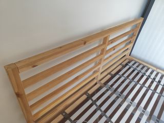 Cama Tarva em madeira, com estrutura sólida e robusta. Ideal para um quarto de dormir, oferecendo conforto e estilo. Peça versátil que se adapta a diferentes ambientes. Medidas 1,60x2,00m em ótimo estado, sem estrado incluído. Em pinho maciço. Sem estrado.
