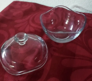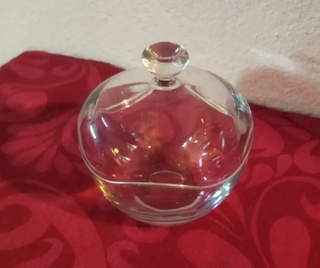 Peça de vidro transparente com tampa. - Design clássico e elegante. - Ideal para guardar doces ou bijuterias.