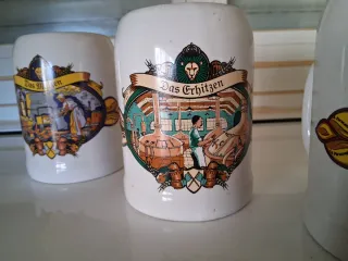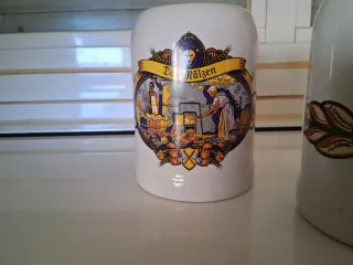 Caneca de cerveja com design tradicional alemão. - Ilustração detalhada de uma cervejaria. - Acabamento em cerâmica de alta qualidade.